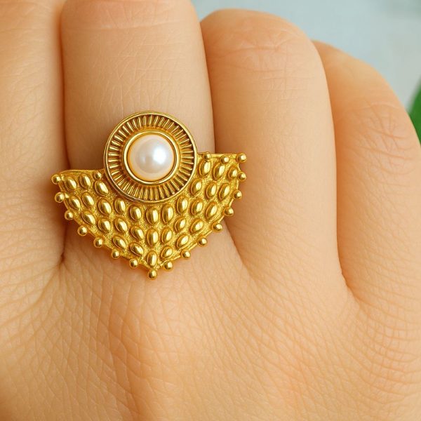 Ring crafted from hypoallergenic stainless steel with a shiny gold finish. Adjustable to any finger size and water resistant, it’s perfect for those looking for style and durability in one piece.